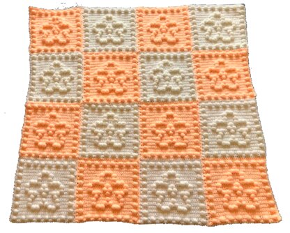 Blanket is made up with 16 of the same motif, this motif is written and also charted.