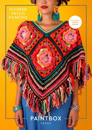 Download the PDF pattern for Flower Patch Poncho - Free Crochet Pattern in Paintbox Yarns Wool Mix Chunky & start crocheting today!