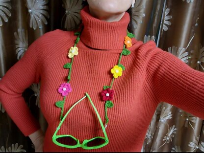 This pattern includes detailed instructions and reference photos on how to make a leafy vine strap embellished with colorful tiny and beautiful flowers for mask/glasses holder , tips to make it as a necklace , some basic and special stitches explanations for beginners and a lot of photos to guide you throughout so that crocheting this project would be an enjoyable and rewarding experience!