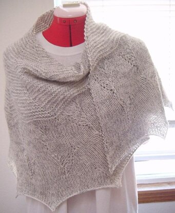 It is a top-down, asymmetrical, one piece shawl. Four strands of yarn were held together to make into dk. It can be made bigger by doing more repeats on the last section. Any yarn weight and colour will be great for it. Gauge is unimportant.