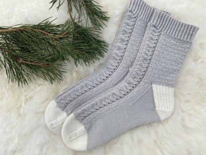 The socks are worked top down, with a snug and cosy heel flap and gusset construction. A perfect winter cast on.