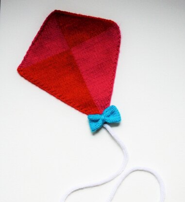 What you will need: 2 knitting needles (US2/2.75mm or size required to match tension advice), 10-15g DK yarn in each of two colors for the kite, 10g white DK yarn for the tail, Yarn oddments for the bows, 1 tapestry needle for finishing