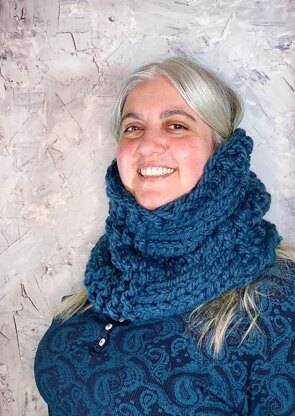 This reversible cowl pattern works up quickly in jumbo yarn. The smaller size is a one skein project; the larger size can be worn as a hooded cowl.