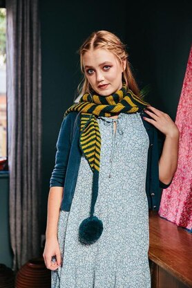 This is an easy project for beginners, with oversize pom poms for making a bold statement. Work in stripes as photographed or use a single colour with contrast pom poms. Designed for use with 4 ply or fingering weight yarn.