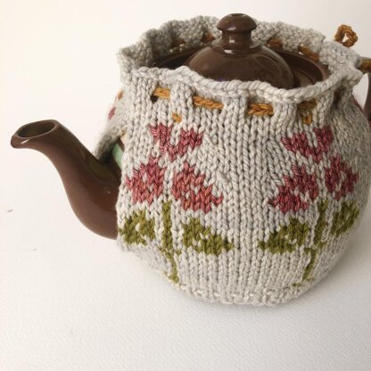 This vintage-inspired tea cozy makes a cheery addition to your breakfast or afternoon tea table! Knit flat in two pieces, this pattern is a great exercise in stranded colorwork (and sewing seams) for new knitters, and a quick project for experienced knitters — perfect for using those DK mini skeins and yarn odds and ends.