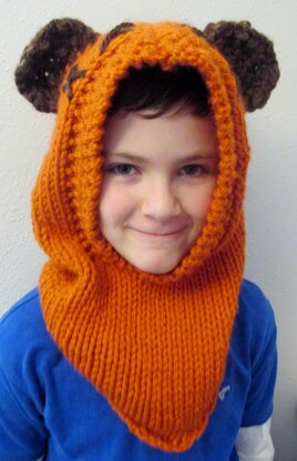 2 sizes included, just change needle size. A bit of brown chunky yarn needed for ears and 'X's on hood