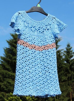 I crocheted this little blue dress for my lovely daughter. It is crocheted in one piece, top down and available in one size. This is a cute dress for a 2 years old girl and perfect tunic for a 4 years old or even an older child. Materials: Yarn: it depends on the size, approx 150-300g/225-450m worsted/10ply yarn, (The dress on the picture has 280gr/425m of Gerlepár from Barka Fonal 50gr/76m.) Hook: size 4.5, or size to obtain the gauge Small Button: which looks good on the dress Finished sizes: The sample dress is 45cm long, and by the breast is 30cm wide. The pattern is available in English (USterms) and Hungarian.