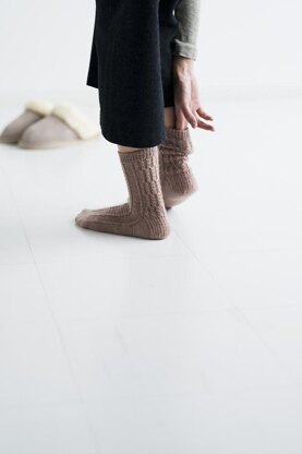 Sizes: Finished foot circumference: S (M) = 7 (8)” / 18 (20) cm Finished leg length: S (M) = 61⁄2 (7)” / 16.5 (18) cm Sample size: Small with 9” / 23 cm foot length