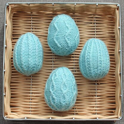 The Eggs are knitted in the round (use double pointed or circular needles) and shaped with knitting increases and decreases.