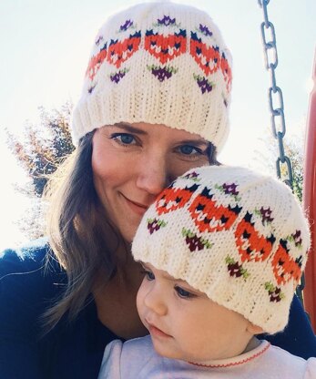 This charming beanie for all ages features adorable stranded foxes and tiny flowers. Foxes are right on trend, but the fox is an age-old symbol of cunning and trickery. Now you, the cunning knitter can choose from five sizes to make this special cap for your favorite sly fox! Available in 6 sizes so no one is left out of the foxy fun!