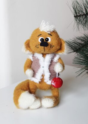 This crochet pattern consists of 24 pages and is accompanied by more than 60 photographs and charts. The toy is crocheted as one piece. You sew only ears, a muzzle, a nose, and a tail. The vest and Christmas ornament are crocheted separately. These parts are removable. The fox is made with a wireframe, so it can move its paws and tail.