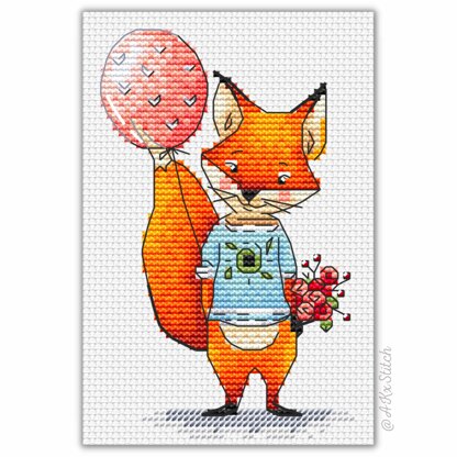 Fox with a Balloon and Flowers Counted Cross Stitch "Best Wishes". Easy to Follow Embroidery Chart featuring a very cute fox with a bouquet of flowers and a pink balloon. Great handmade gift idea for a baby shower, gender-neutral birth sampler or get well / best wishes card. Fits a standard A6 blank craft card or 6-inch hoop.\n\nSize: 43w x 69h stitches\nStitched on Aida 14ct: approx 8 x 13 cm (3 x 5 in)\nDMC Threads: 17 solid colours (4 blends)\nUsed stitches: full cross stitch, half cross-stitch, backstitch\nSkill level: Easy / Beginner\nStitch time: 11-18h\n\nCross stitch pattern in PDF, Instant Digital Download includes: 1) cover page with preview; 2) instructions, symbols key and shopping list (DMC thread colour numbers and estimates, as well as fabric options); 3) two black and white charts, with and without backstitch; 4) two colour charts, with and without backstitch; 5) single page PDF for Pattern Keeper (available on request).\n\nPlease note: This pattern is for personal use only - not for commercial use. You can't make copies of our charts to distribute (either as PDF or printed versions) but you can definitely sell your finished cross stitch work.
