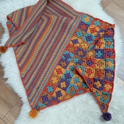 This is a versatile 3 in 1 pattern - option 1: make the original shawl or option 2: make the moss stitch half and option 3: make the granny square half and turn these into a shawl.