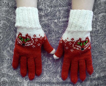 Very easy-to-make gloves with only a narrow stranded band; the rest of the gloves is plain stockinette. You can use fingering-weight yarn for sizes S/M, and sportweight for L/XL. A few stitches on fox face is embroidered with duplicate stitch. Special thanks to Luba (nitochka2013) for pictures!