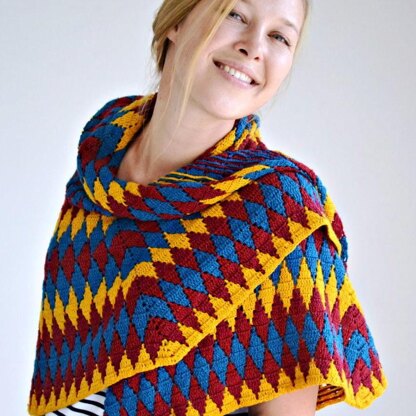 Foxtrot is a crochet shawl worked from the top center back to the edges. It is a generous half-circle created by four increase lines which divide the shawl into five segments.