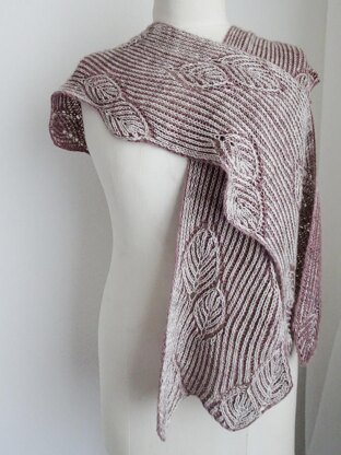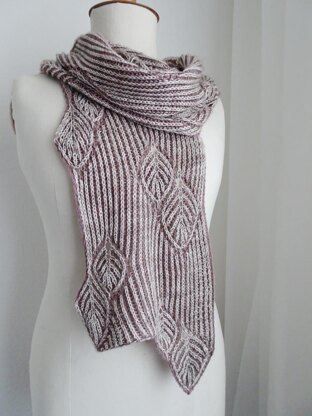 Silver leaves in varying sizes are scattered on a brioche pathway for a delicately evocative autumn scarf.
