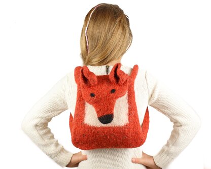This knitting pattern gives instructions for one size of fox backpack or bag. It is knitted in a chunky felting yarn (we recommend DROPS Eskimo and have tested this yarn extensively in this pattern to allow for the correct amount of shrinkage) on size 11 (8mm) needles.