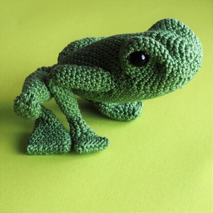 I spy with my little eye…. Freddy the frog. Freddy is an expert in playing hide and seek. The dark green water helps him to disappear when he doesn’t want to be seen. Freddy is a no sew amigurumi, which means all parts are crocheted together. When you’re done crocheting the last row, Freddy will be completely finished and ready to be your next best friend to play in the rain.