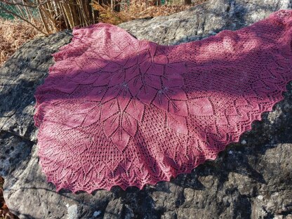 The French Maple Shawl is an extra wide crescent shawl worked forth and back in one piece from the top down.