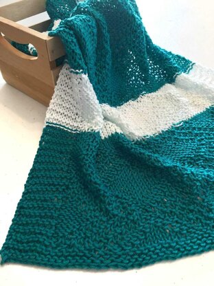 Needle: US 8 (5.0 mm), 32” (81.3 cm) circular needle {straight needles may be used if preferred, I used circular to accommodate the number of stitches.Notions: Tapestry needle. Yarn Used: Cascade Ultra Pima Cotton (100% Pima Cotton; 220yds/200m; 3.5oz/100g; Colorways A- #3735 Jade, B- #3728 White). Yardage: Yardage needed is approximately 280 yards (1 ball of each color). Gauge: 18 sts and 20 rows per 4”/10cm in Stockinette Stitch. Gauge is crucial to this project, be sure to check your gauge often. Final Measurements: 16" x 26” (40 cm x 66 cm) Blocked.