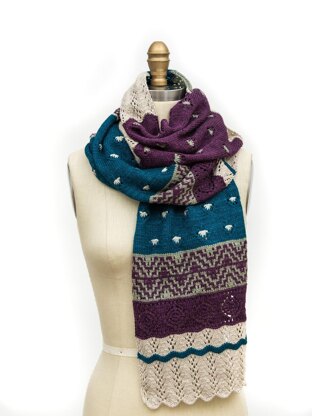 Wrap yourself in this beautiful scarf that showcases unique stitch patterns and color. This piece was inspired by a Mexican Rebozo and can be worn like a shawl or wrapped like a scarf. Worked in 2 pieces from the ends to the center, then joined using 3-needle bind-off. Kit (pattern & yarn) can be found here.