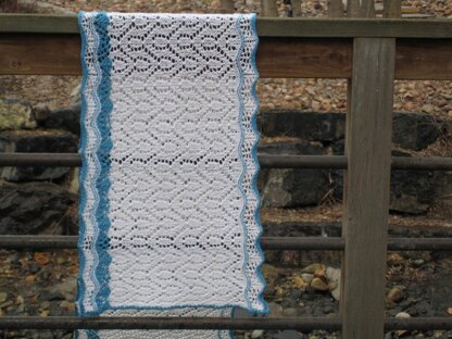 When designing this wrap, I knew I wanted to use a large lace pattern with a little bit of contrasting yarn. I fell in love with this stitch pattern, and I got so caught up in the ebb and flow of the pattern that I couldn’t stop knitting. I laid it all out for blocking and sent a picture to my sister. After looking at the picture my sister said, “The pattern looks like people holding hands.” So, this is my friendship shawl.