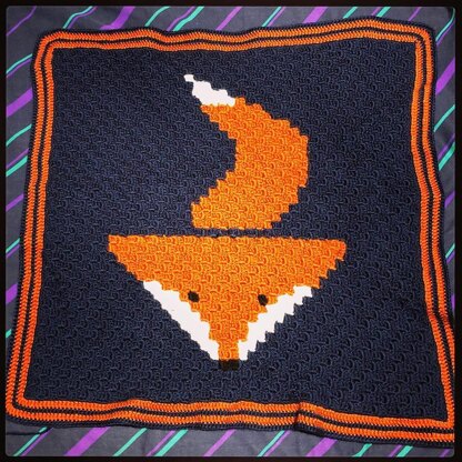 A corner to corner crochet pattern. Two options: fox with ears or fox with a tail.