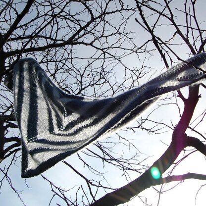 Inspired by bare branches and sparkling frosts, these easy shawls play with luxurious contrasts. The opaque stripes give weight and drape, adding warmth on a chilly evening. The sheer, gently sparkling stripes give a hint of what’s hiding underneath.