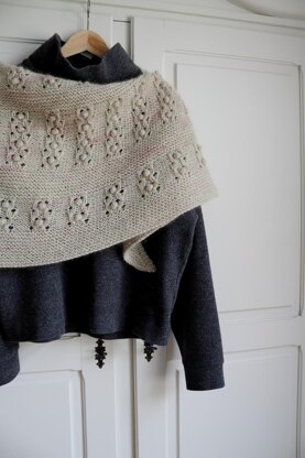 This shawl design is inspired by the soft spring colors, lovely flowers and first buds on trees. Long, bright days, fresh air with flower scents and bird songs invite for a walk in nature after a long, cold winter. Even though spring brings the first warm days it can also be very cold and uncomfortable. A cozy and fluffy shawl with an interesting design thah is fun to knit is the perfect accessory for the changeable spring weather. The shawl is called Fruehling for Spring in German. The shawl has crescent shape, beginning in the middle of the top and working increases at the edge stitches. Beginning with Garter Stitch gives time to become confident with the shawl shaping before the Lace section starts and brings a lot of change into the project. The alternation between Garter Stitch and Lace sections makes the pattern fun and very interesting to work. Edge stitches are knitted with Garter Stitch.