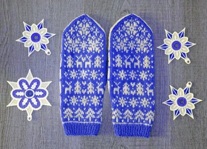 2 Versions: three versions are available: 1) V1 - 68sts with afterthought thumb; 2) V2 - 70 sts with thumb gusset, 3) V3 – extra charts for a 3-color version with gusset.