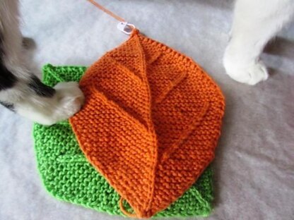 Furballs' Kittywood Leaf is a 9.25” x 6.75" leaf shaped dishcloth with central and side veins. Constructed in garter stitch, it is well suited to clean up dirty dishes and easy to knit. Written in one (1) colour and one (1) string.