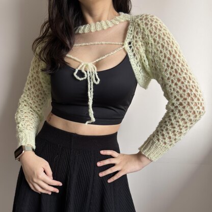 Featured the neck ribbing and the front tie, Gaea is an elegant and airy shrug made with relaxing repetitive stitch combo. Along with my 'stitch formula', Gaea creates fitted but stretchable sleeves as the second layer of skin. Or, you can make an oversized version to have a chic outfit that is perfect for spring and summer time!