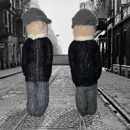 Knitting pattern designed in an easy one knit construction making this a super simple yet really effective project. Figure stands 30cm when made, and is styled with distinctive cap as shown in images. Pattern contains instructions for one knit body, scarf and cap and includes finishing touches of nose and cigarette.