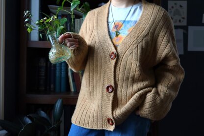 The Gaon Cardigan Aran is a seamless, top-down cardigan featuring three-by-one texture all over and a button band worked up at the same time. The top back panel is worked, then the shoulders are worked. The three pieces are then connected and continued down. The sleeves are then picked up and worked top-down, in the round, and short rows are added along the shoulders and the tops of sleeves as they are worked to ensure a comfortable fit.