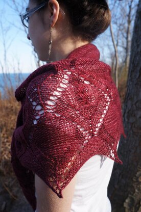 There are no center increases in this shawl. This creates a scooped shape that has a long wingspan and shallow depth. Because there are no increases (other than decorative within the lace) across the row it is important that your knitting not be too tight. Keep the stitches relaxed to allow for the best possible blocking results.