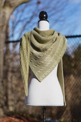 Finished Measurements: Wingspan x depth at centre after wet blocking: 67 (80)“ x 19 (25.5)” / 170 (203) cm x 48 (65) cmYarn: 500 (750) yds / 457 (686) m DK weight yarn that achieves gauge. The sample is shown in Knit by Numbers by JohnArbon Textiles in KBN 58-60.Size: US size 7 / 4.5 mm long circular needle for holding a large number of stsNotions: Tapestry needle, cable needle, safety pin, or removable markerGauge: 20 sts = 4” / 10 cm in Garter Stitch after wet blocking (gauge is not overly important; however, it will alter yardage and finished measurements)Skill Level: Intermediate / Adventurous BeginnerNotes: Asymmetrical triangle shawl, knit sideways and designed so the knitter can use as much of their yarn as possible. Both written and charted instructions are included in the pattern