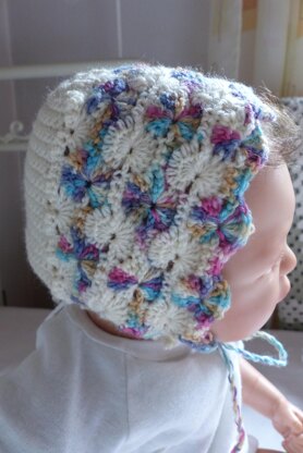 Gehäkelte Haube / Babymütze zum Binden für ein Neugeborenes.