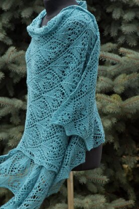 This shawl is perfect if you like a bit of challange while knitting. You can easily make it shorter or longer, you only have to make less or more repeats of the pattern. The shawl is knitted in two parts - one is pretty short and the other is much longer, the eyelets are only on one side and it makes the shawl a bit unsymmetrical. At the end, you sew both parts together.