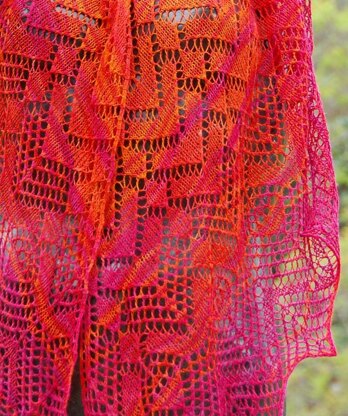 Be you ginger, brunette, or blonde this shawl will keep you covered! It is a large triangle shawl, knit top down, one side (no ptbl this time!), and beads (800) if you like, knit in lace or fingering weight.