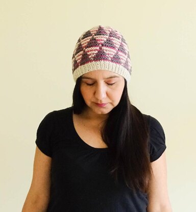 This hat plays with color and texture to make an interesting geometric pattern. If you want, you can add a pom pom for extra drama.