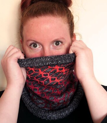 Clean, geometric lines form the main decoration of this cosy cowl. Interlocking, 3-D blocks link together to create the angular pattern.