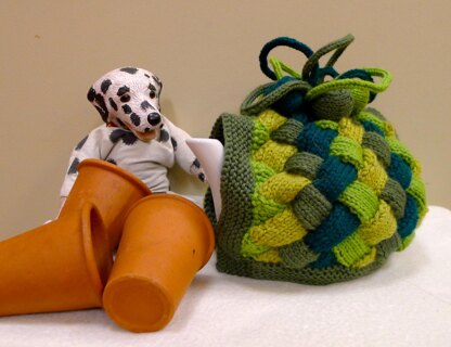 I have always had a sneaky love of entrelac knitting, In the 80’s there were lots of big puffy sleeved jumpers featuring entrelac and models with big hair. Anyway no puffy sleeves here I thought I would showcase the geometric style of the knitting in a tea-cosy. A small project and one where you just have to knit a single piece of entrelac which becomes the base of the tea cosy. This is embelished with knitted balls and twisted “I Cords” to heighten the geometric theme. If you are not a fan of green use your favourite shades of another colour or go for a mix of brights or pastels. The beauty of using shades of one colour is you can see them all weaving in and out of each other really well to make the trellis like pattern.