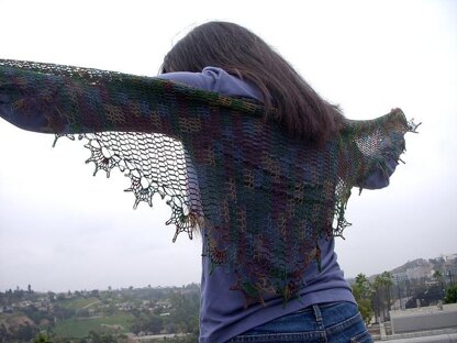 Inspired by the motifs on Kali's Cowl, Geoui is a shawl that is worked from point-to-point. Gorgeously lacy and dangerously addicting, the edging is worked as you go, so you can make the most of the yarn you have by working half of your yarn to the increases before decreasing.