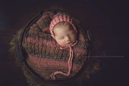 This is a downloadable PDF pattern for the knitting of this Gerbera Daisy Round Back Bonnet in newborn/21-22 inch reborn size SIZE and NOT the actual finished bonnet