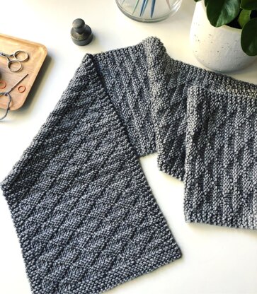 Get in Touch scarf and wrap knitting pattern is easy to knit with worsted weight yarn. An 8-row repeat stitch pattern creates a modern triangular design that is reversible.