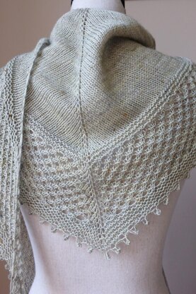 The haunting beauty of the yarn, with its textured lace, garter ridges and gentle picot edge, makes this a eye catching shawlette. This classic heart-shaped triangle is knit top down and its size can easily be adjusted.