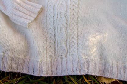 Ghost Stories is a top-down seamless raglan. A wide cable panel runs down both front and back. Top-down means minimal finishing: just knit a neckband and weave in the ends. That's it. Slight A-line shaping is both comfortable and flattering.