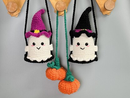Ghost Witch Hats Sit on Swing Pumpkins crochet