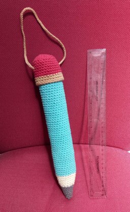 This giant pencil could be used as a pencil case or a crochet hook case – or make it longer for knitting needles. The eraser end slips on and off, held on in netsuke box style with its braided cord going through the two slits you make as you go. It’s really simple to make, and if you had leftover aran yarn, you could make the main part with scraps rather than one single colour to use up bits.