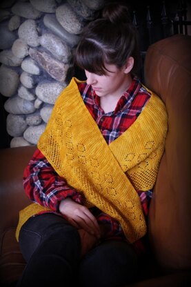 Gilded Flicker is a cozy, garter stitch crescent shawl knit sideways from end to end. The lace motif is reversible, making this the perfect piece to reach for when you need a touch of extra warmth. Choose a cheery color to brighten up the dreariest day!